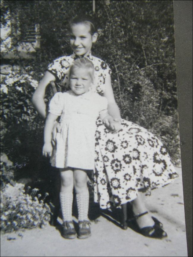 Gudrun mit ihrer kleinen Schwester Hedi 1956 vor ihrem Elternhaus in Graz