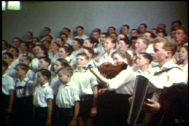 1960 Jugendheim in Siegburg/Heide: Der rothaarige Wolfgang (13) Mitte links, neben der Violinistin. |